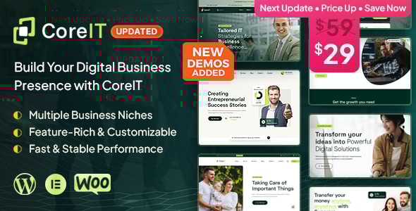Core IT is a powerful and flexible Multipurpose WordPress Theme designed for IT consulting, finance, startups, software companies, digital agencies, web design agencies, SEO firms, insurance companies, and all modern business websites.
