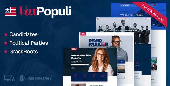 VoxPopuli is a WordPress Theme for political party, campaign, politician, political and office candidates, grassroot initiatives and movements. This WP theme is built having in mind actual needs of political parties, candidates and other political movements and camapigns. This WP theme features 3 demos with distinctive design and carefully designed inner pages.